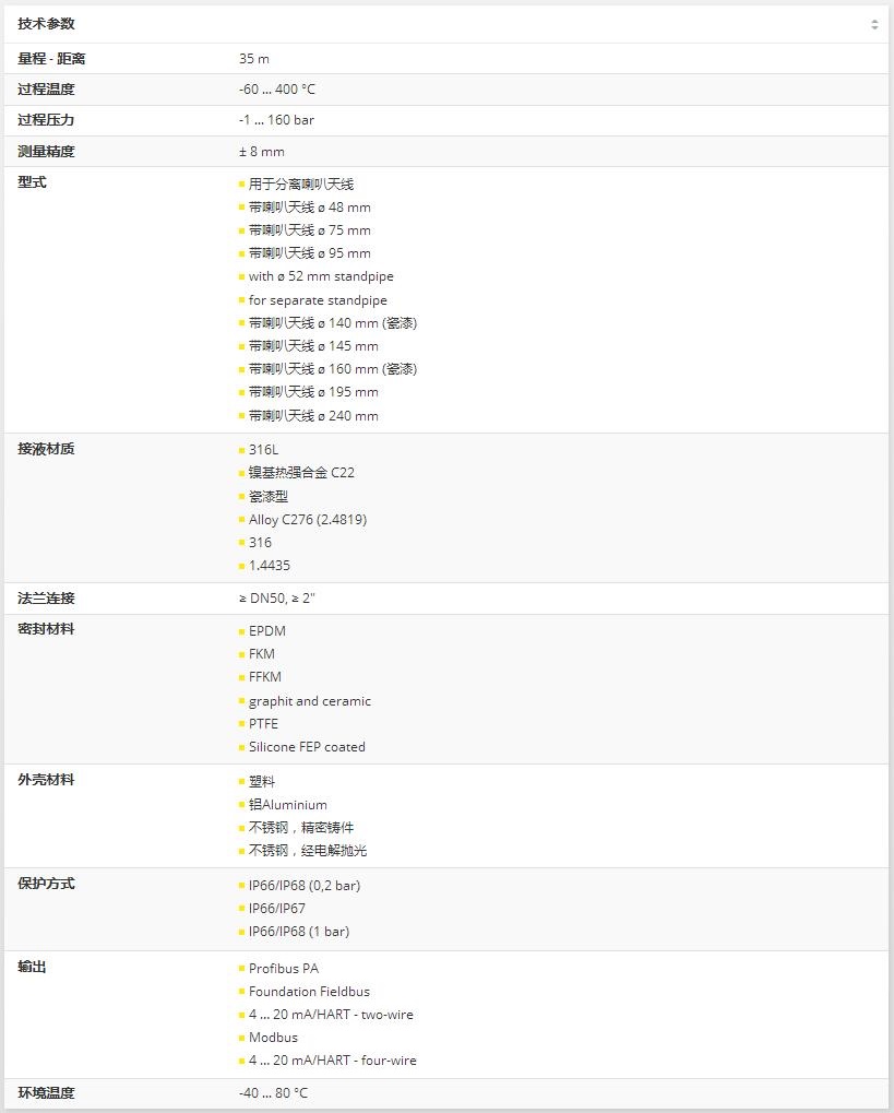 雷達物位計VEGAPULS 66用于惡劣過程條件下液體的持續性物位測量。 適于在儲藏和過程容器以及豎管使用。 VEGAPULS 66雷達傳感器有不同天線種類,應用廣泛。