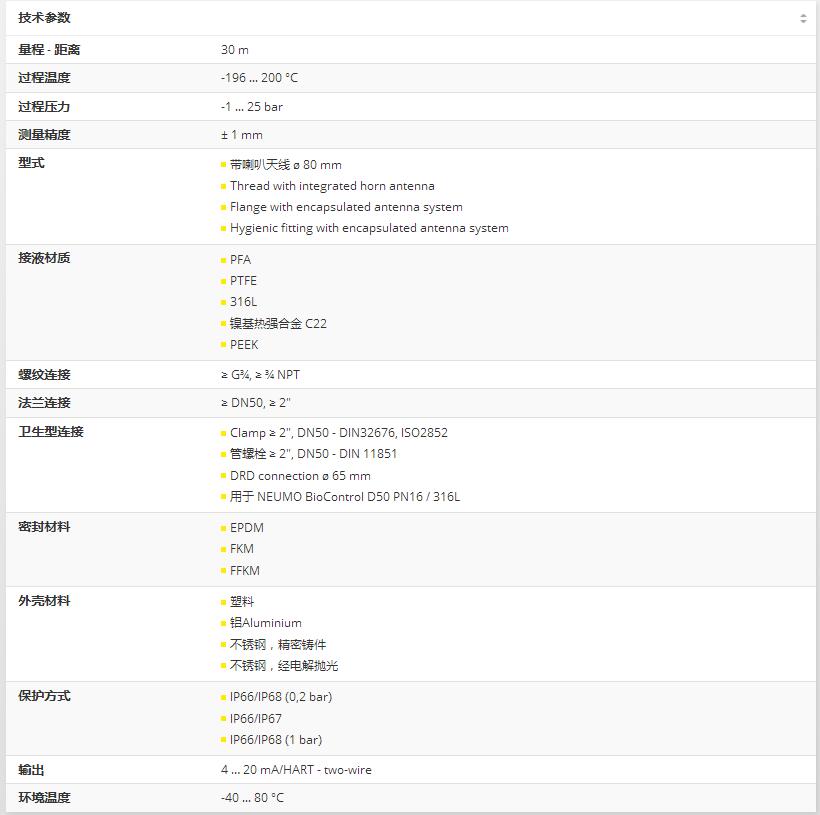 VEGAPULS 64是一種用于連續(xù)測量液體液位的傳感器。對(duì)于小型儲(chǔ)罐或狹窄空間,小型工藝配件具有特殊優(yōu)勢。非常好的信號(hào)聚焦使其能夠在許多設(shè)備(如攪拌器和加熱螺旋管)的容器中使用。測量度高,不受過程條件影響
