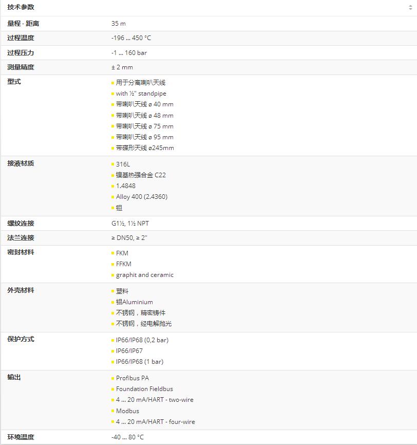 困難的過程條件,如:的溫度、過壓或真空,對于物位計VEGAPULS 62來說完全不是問題:準確可靠地測量儲罐和過程容器內的物位。借助雷達技術物位計非接觸測量液體物位并連續提供高精度測量值。